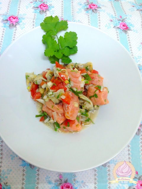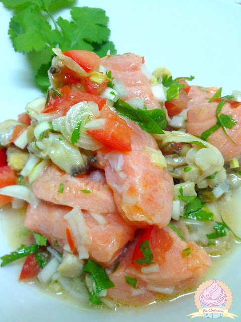 CEVICHE DE SALMÓN Y ALMEJAS (para 4 personas):
