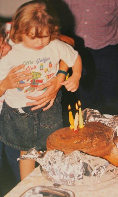 ¡Hoy hace exactamente 24 años de esta foto!, como podéis ver, el pastel era hecho por mi madre, y era mas grande que yo... jajajaja (de ahí mi cara de susto...)