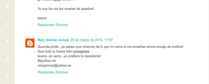 -A mis alumnos de los cursos, que no se limitan a hacer un curso si no que repiten y me piden mas y mas cursos, gracias sois la caña y os aprecio mogollón, gracias a vosotras/os me ha cambiado la vida y os estoy muy agradecida, pero en especial a Eli de Coulis de limón, por ser mi primera alumna literalmente y apuntarse a todos y cada uno de los cursos.
