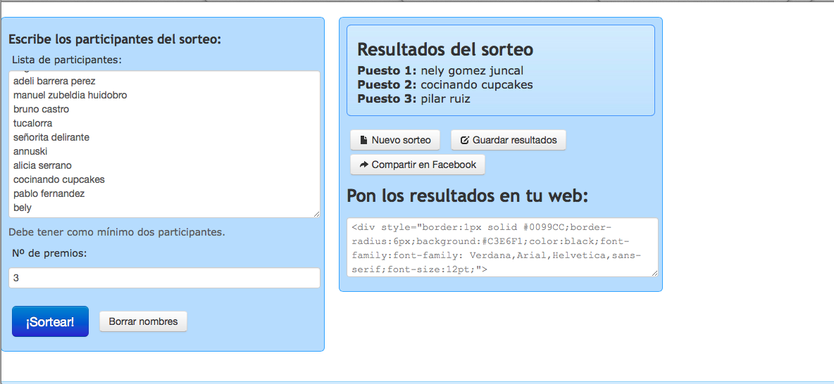 -En sortea2 pondré la opción para que salgan tres ganadores de la lista y por el orden que salgan los ganadores se llevarán los lotes, es decir, si sale: Pepita, Paco y Maria (nombres inventados), Pepita se llevaría el lote uno, Paco el lote dos y Maria el lote tres, y bajo ninguna circunstancia se cambiarían los lotes de orden.