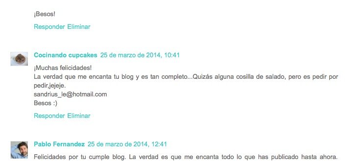 ResponderEliminarHola Ester, soy la primera en felicitarte. Enhorabuena por estos dos años llenos de exitos. Me gustaria ver en tu blog tartas, porque tu lo explicas todo muy bien. Gracias, te dejo mi email rosaromero68@hotmail.com.