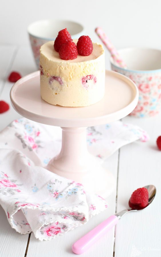 Pues total, que os traigo una tarta helado, con lo cual, no necesitaremos horno, es fresquita, es un postre original, está delicioso, y va relleno de frambuesas, que contrastan el dulzor de la crema con ese toque ácido. Os lo recomiendo 100%, para no recurrir al típico helado o polo, y hacer algo diferente de vez en cuando. ¿Qué os parece?