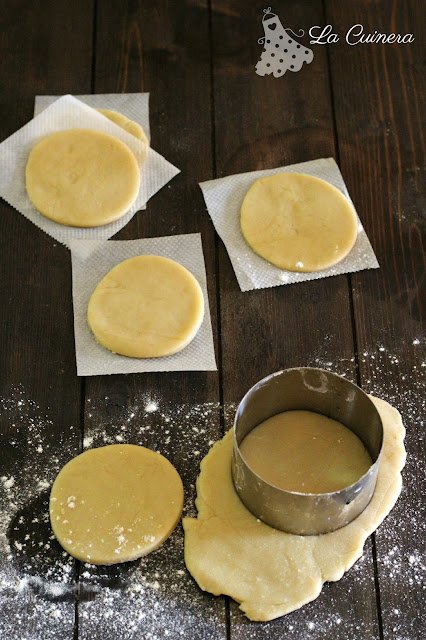 .Con un corta pastas o un aro de emplatar como el que veis en la foto, hacemos unos círculos, (o con un vaso mismo).